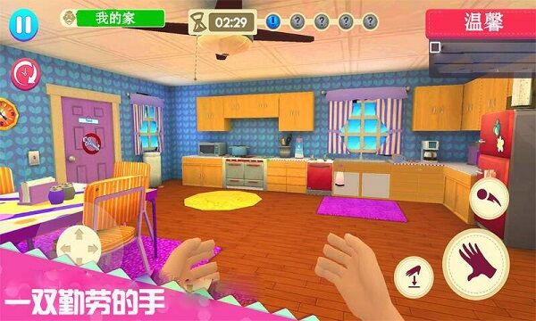 1、沉浸式3D体验,第一人称视角打造真实家庭场景,让你瞬间代入宝妈角色,感受手忙脚乱的带娃日常。