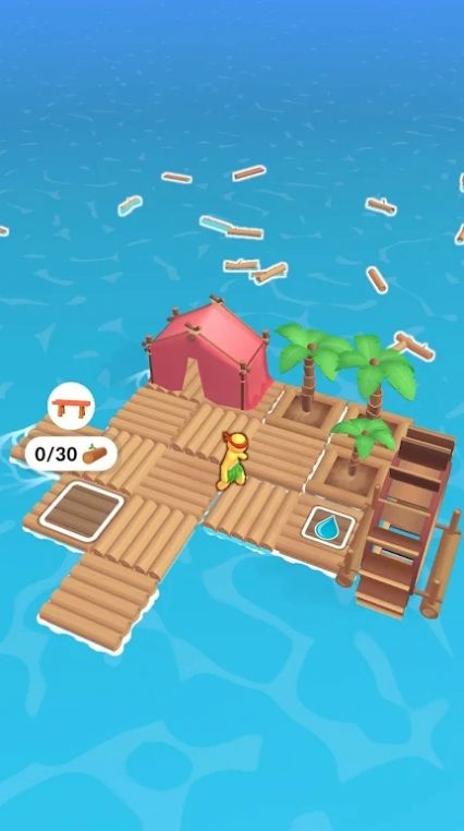 1.通过收集浮木塑料瓶绳索等,不断的去扩建筏升级筏子;